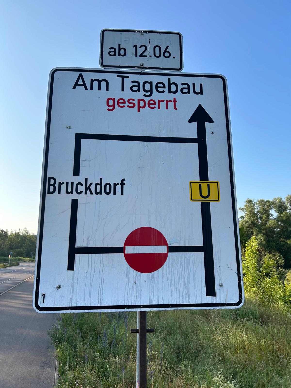 Die Straße "Am Tagebau" ist bereits jetzt eine Einbahnstraße und somit nur noch aus Richtung Bruckdorf/ B6 befahrbar.